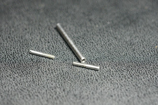 Ось собственной конструкции. Поскольку в серебре и латуни резьбовые соединения не желательны, я разработал собственную конструкцию оси. Это центральная втулка с двумя винтами, вкручивающиеся в нее, и проходящие через ушки бакли. Материал — нержавеющая сталь. |