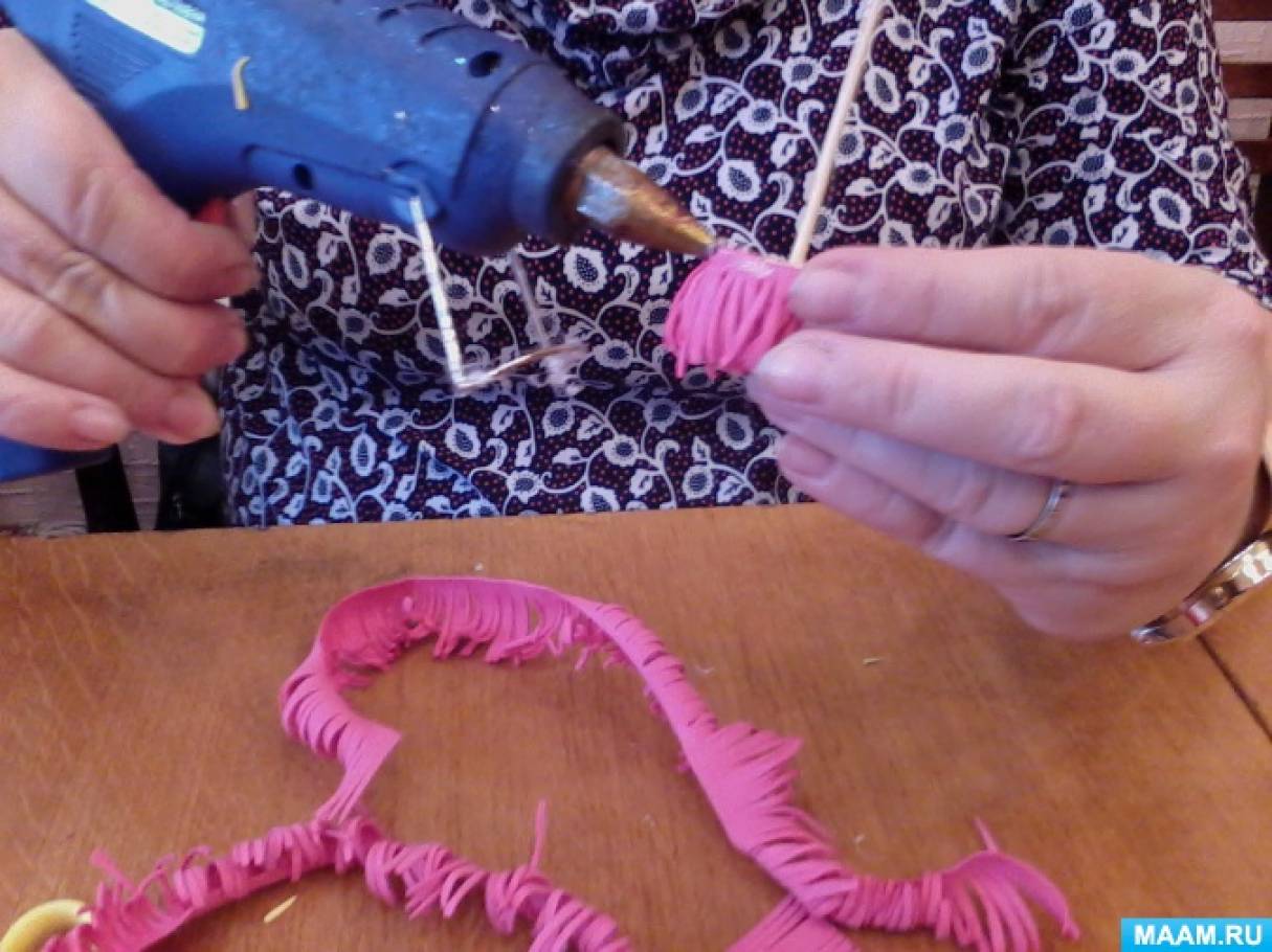 Клеевым пистолетом во время скручивания точечно наносим клей на основания полосок.