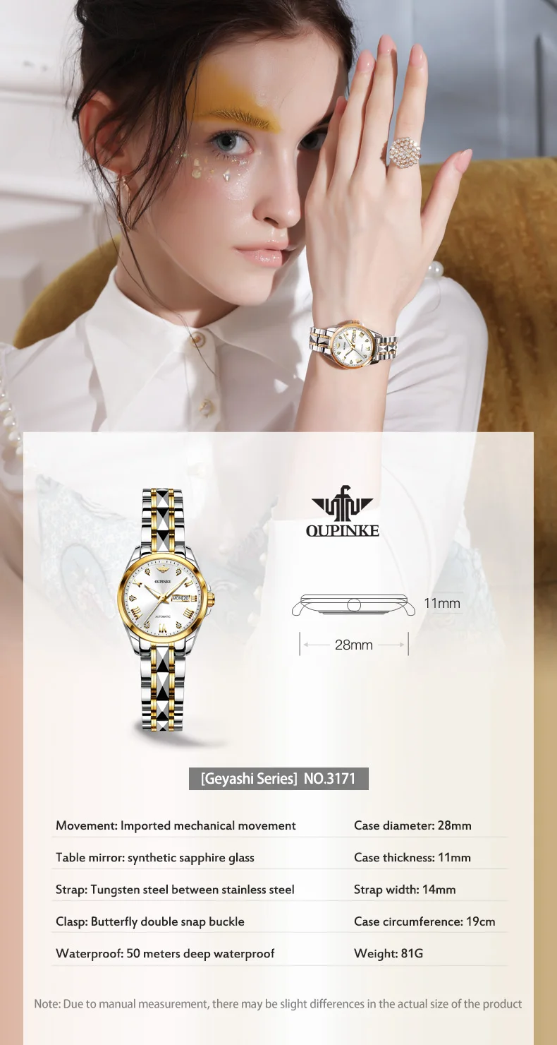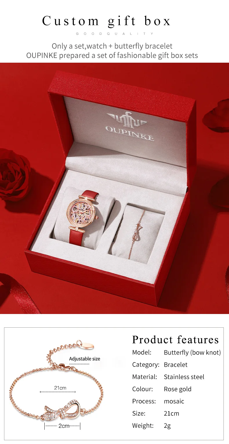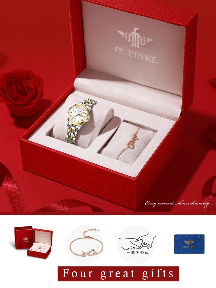 1 часы OUPINKE 1 Роскошная Подарочная коробка OUPINKE 1 Руководство пользователя 1 роскошный браслет с бриллиантами 1 инструмент для регулировки стального ремня