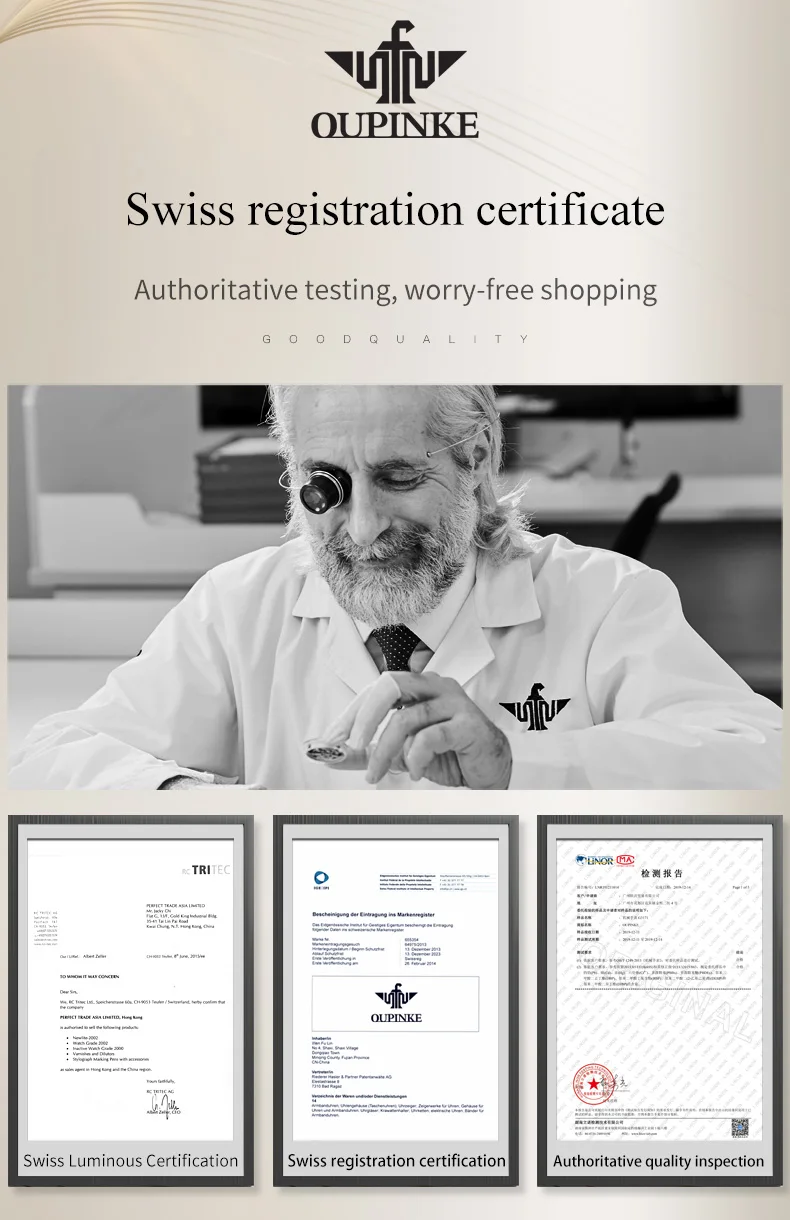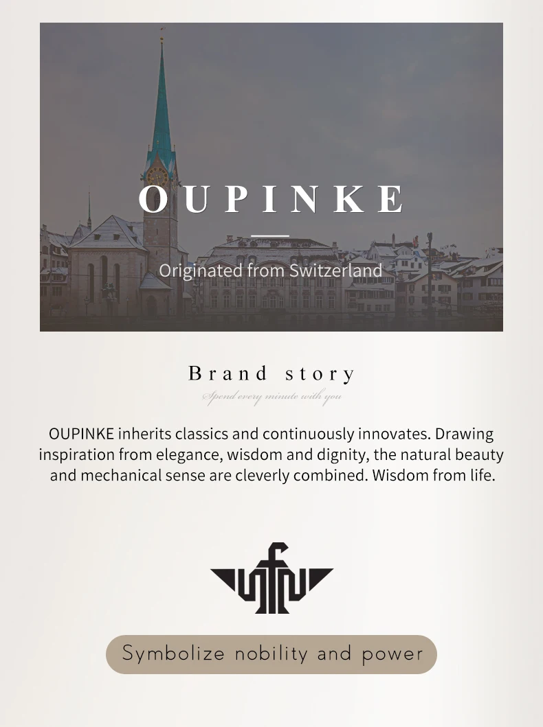 1. OUPINKE-это швейцарский бренд часов с глубокими корнями в Швейцарии. Все движения принимают импортные движения. Дизайнер часов является известным экспертом часов из Швейцарии и Германии. 2. Срок службы бизнеса: «Управление целостностью». 3. Сочетает в себе моду, элегантность и уникальность.