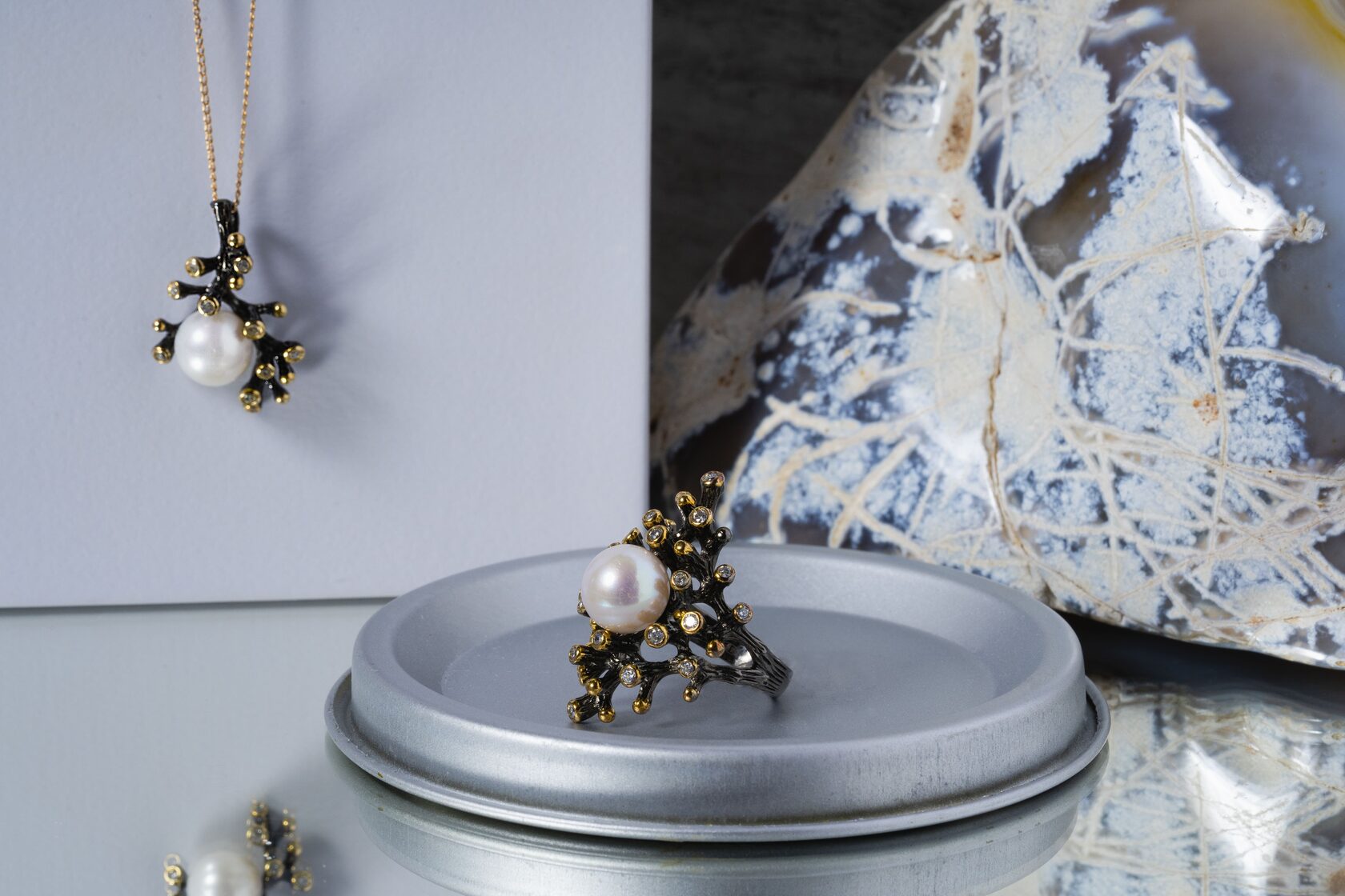 Кольцо и подвес с жемчугом из коллекции ETHNICA