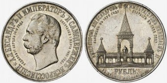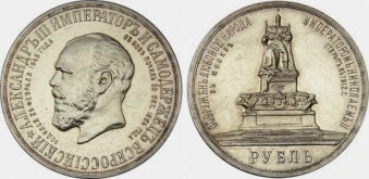 1 рубль «В ПАМЯТЬ ОТКРЫТИЯ ПАМЯТНИКА ИМПЕРАТОРУ АЛЕКСАНДРУ ІІ»