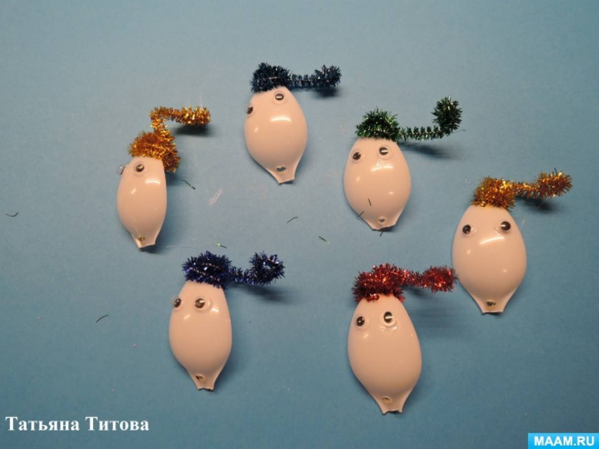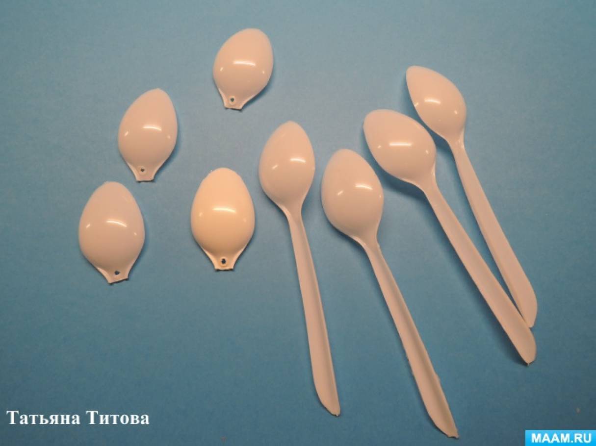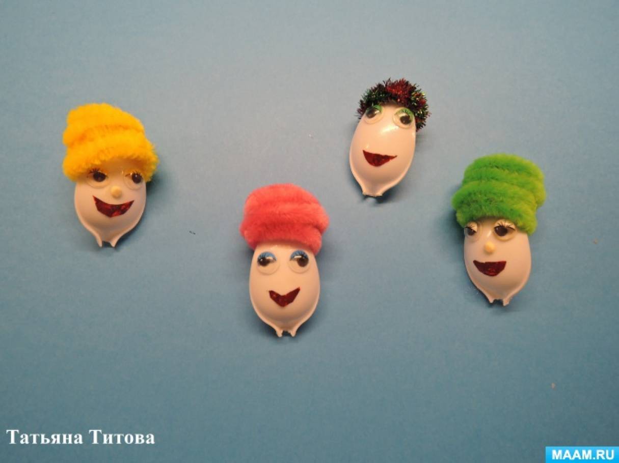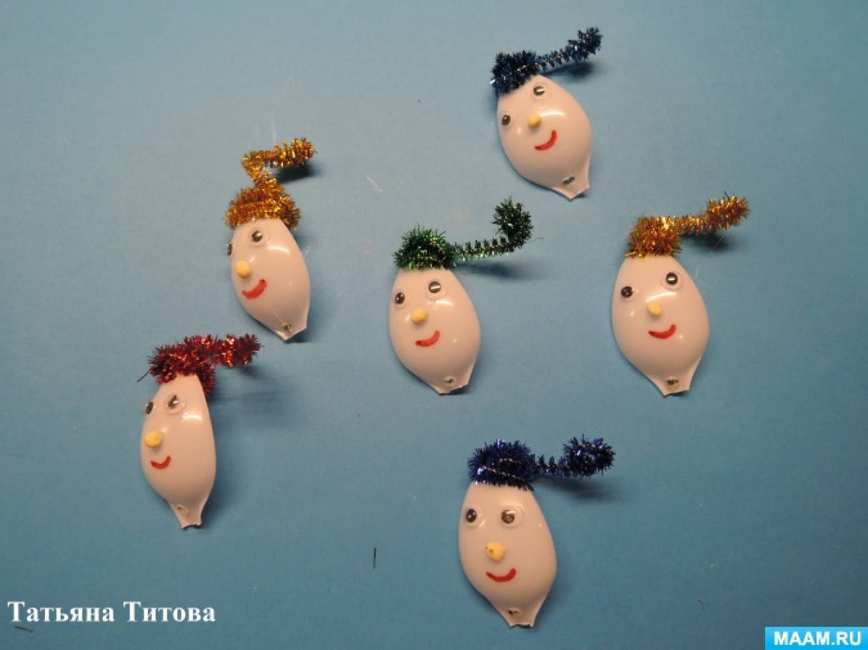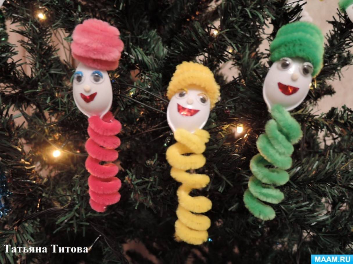 Материал: синельная проволока, мишура, пластиковые ложечки, шило, маркеры, пластиковые глазки.