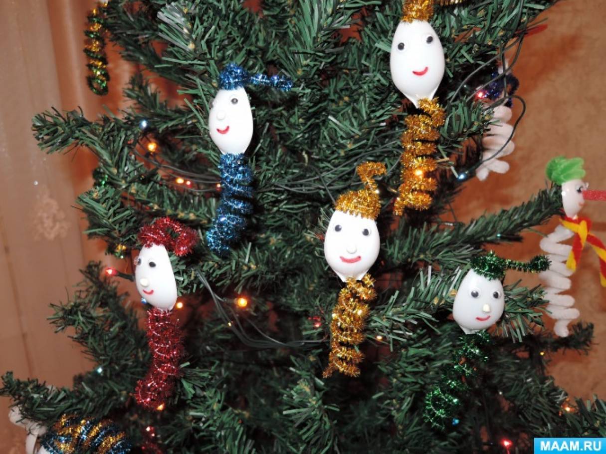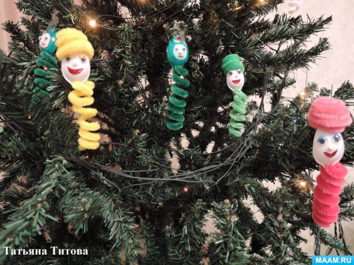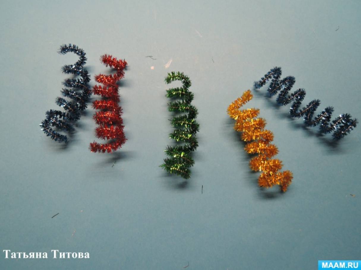 Мастер-класс по изготовлению елочных игрушек для новогоднего хоровода из синельной проволоки и мишуры