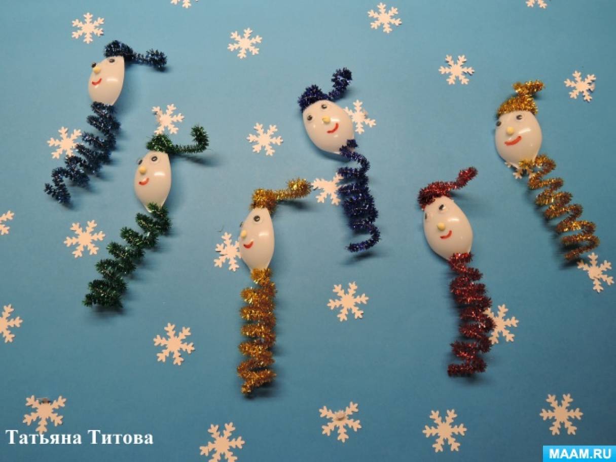 Украшаем елочку самодельными новогодними игрушками. Мастер-класс по изготовлению Снеговиков из синельной проволоки и мишуры Украсить елочку можно новогодними игрушками, изготовив их из бросового материала, синельной проволоки и проволочной мишуры на основе спиралек.