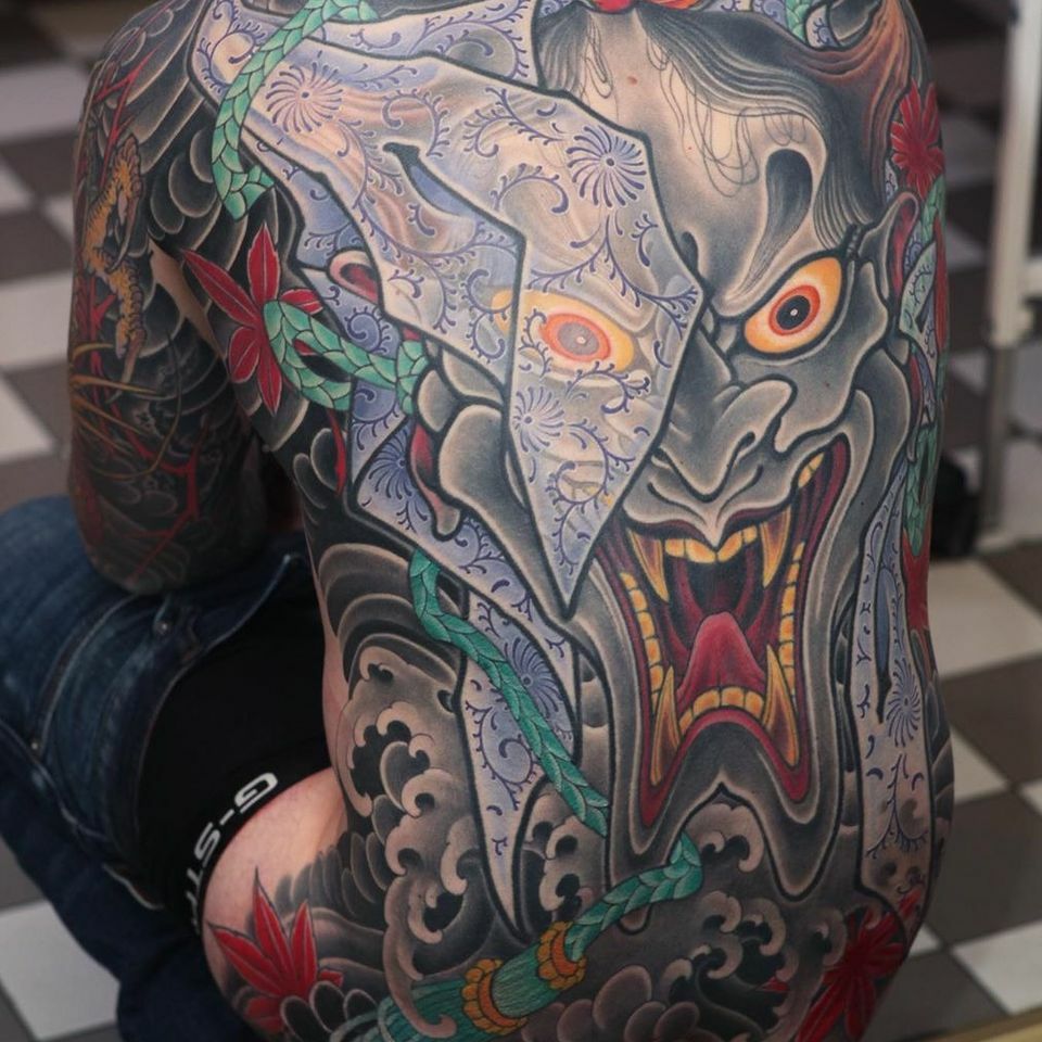 Традиционная татуировка Hannya уже давно используется членами японской банды якудза, чтобы символизировать, что ее носитель неумолим и не знает пощады.