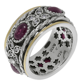 — Биметаллические со вставкой. Обычно используется золотая пластина, цепочка или выделение узора другим металлом. Это дополняется жемчужными и драгоценными вставками.