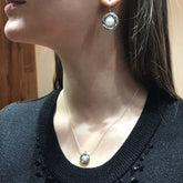 — Со вставками. Серьга имеет драгоценный камень – гранат, кианит, опал, ламбрадор или другие. Также цепочка или пластина может украшаться жемчугом и бирюзой.