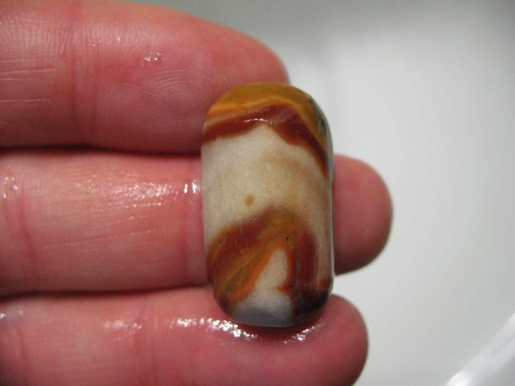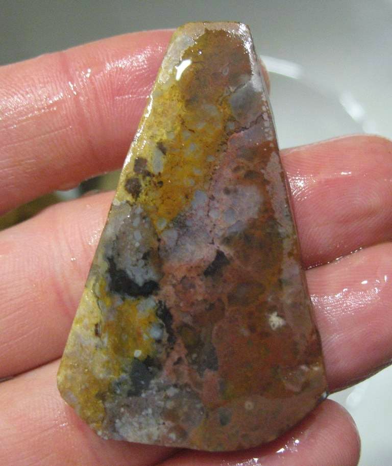А эта заготовка кабошона из опализированной породы найденной в Подмосковье. Опал в Подмосковье? Моя мечта найти настоящий опал. Мечта дилетанта. Не может быть опала в куче ледниковых отложений. Опал должен герметически упакован в породе что бы не высохнуть. Опал потому и опал, что на 20-30 % состоит из воды.