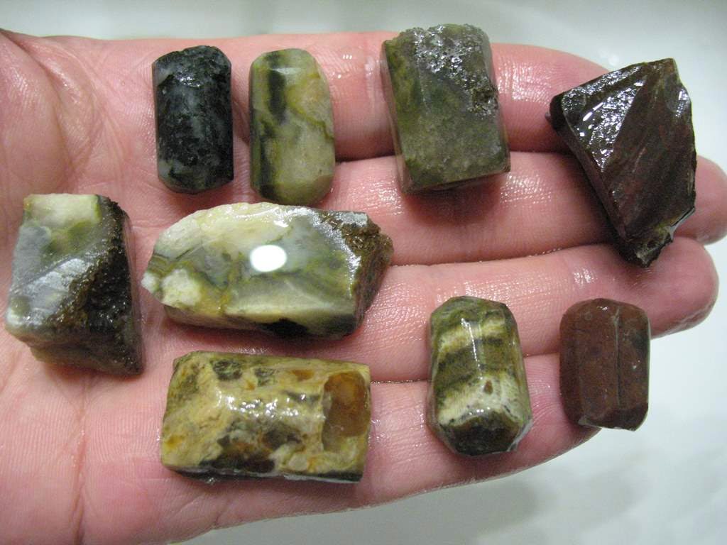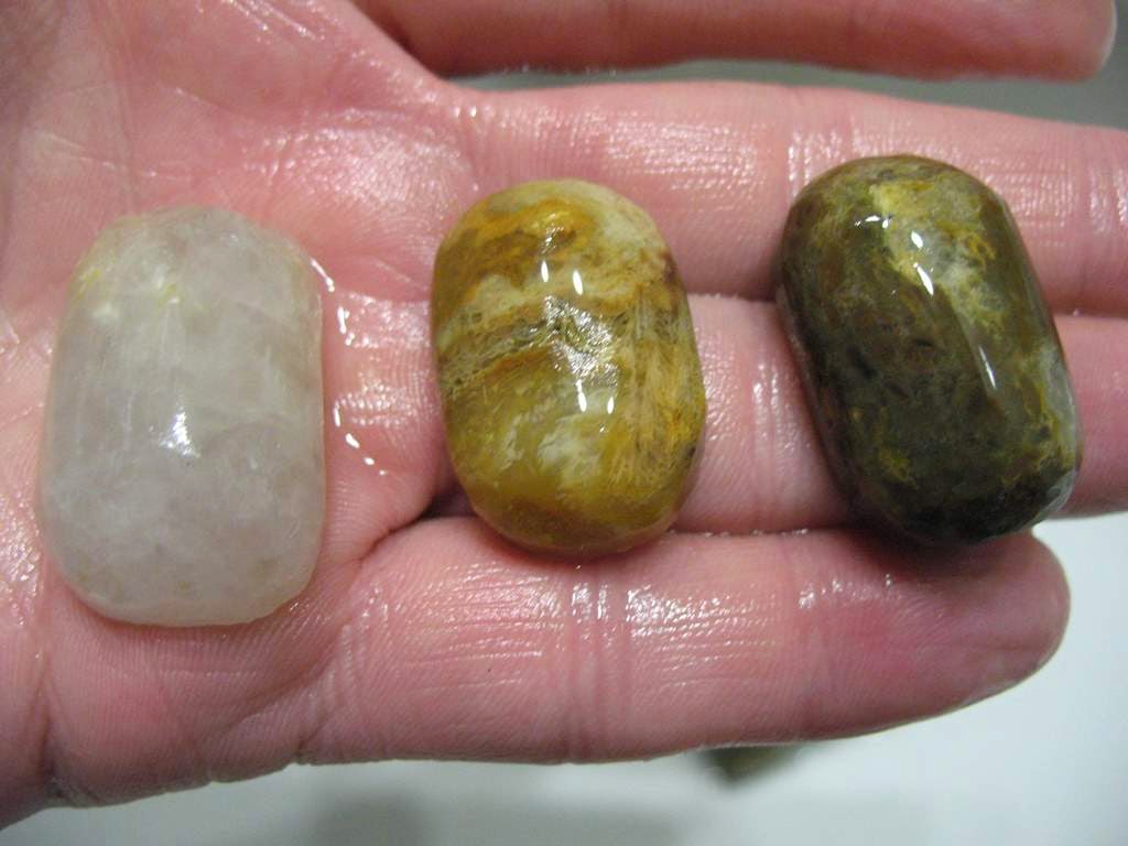 Что то естественно ушло в отход потому как не знаешь, что внутри камня. Это где нибудь на Урале пошел в шахту, набрал самоцветов красивших и засыпал их в машину по производству кабошонов. Включил и кабошоны как пельмени начинают выскакивать в подставленное ведро. В Подмосковье сложнее. Нет у нас таких мест где мешками драгоценные камни можно собирать.