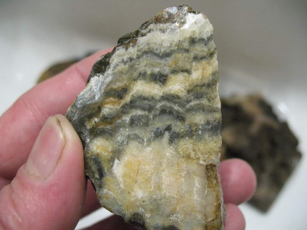 А в этот раз как то не очень удачно порезал. Режу камень и в мусор. Опять режу и опять в отход. Эту конкрецию взял в руки. Покрутил.