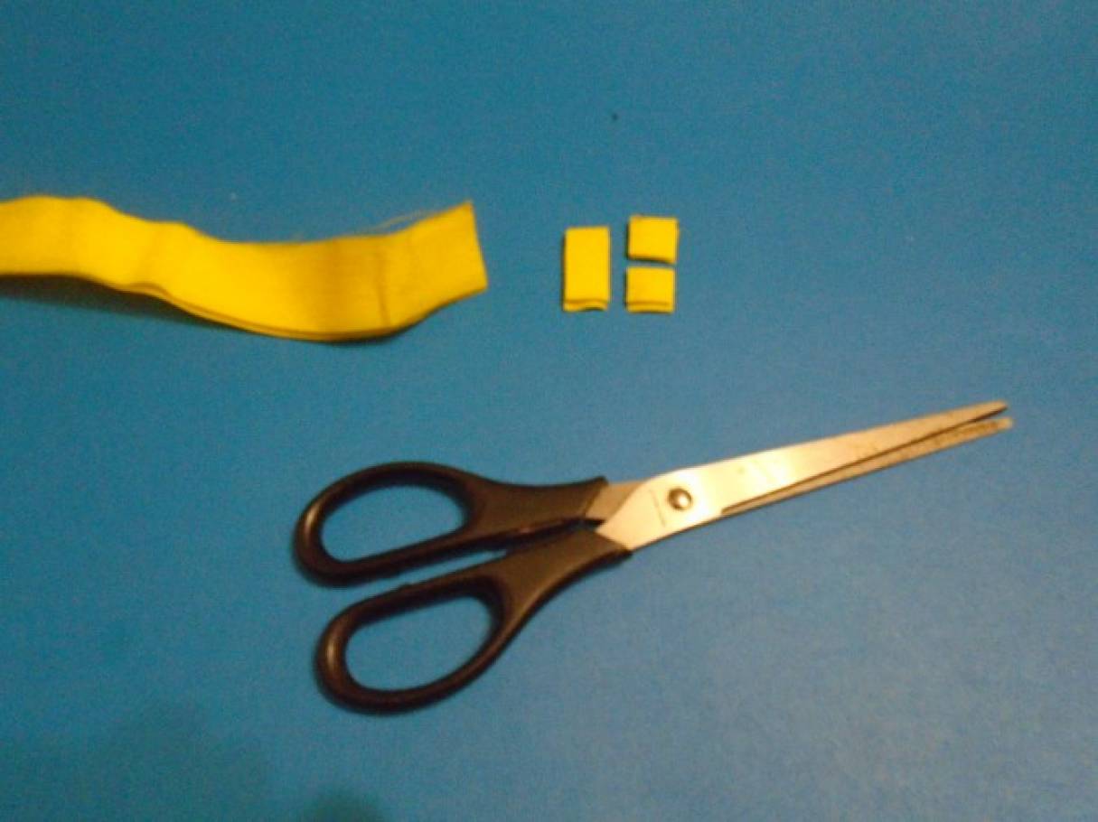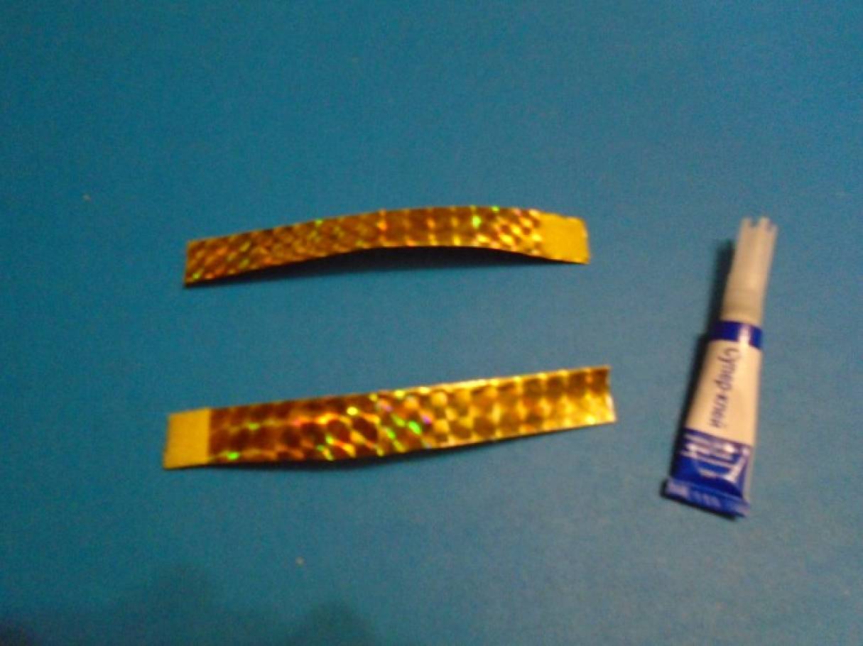 Необходимые материалы: блестящая золотистая самоклейка, ножницы, суперклей, жёлтая липучка для одежды.