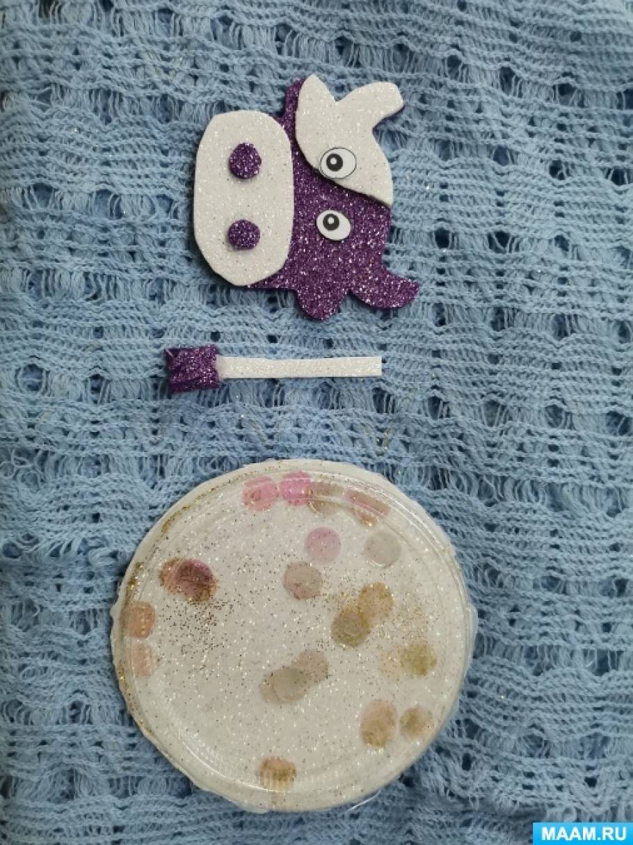 Склеиваем, при помощи клея — пистолета голову, хвост бычка.