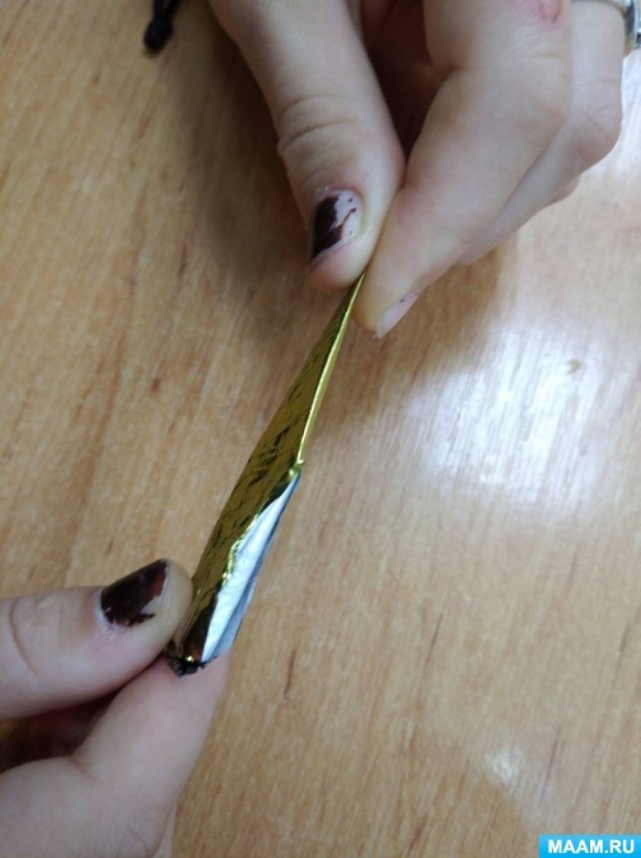 фантики складываем вчетверо (заворачиваем 2 раза), получается полоска.