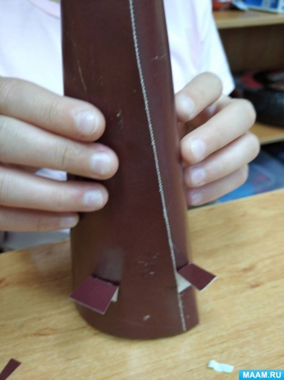 Мы придумали закрепить круги вот на таком конусе из коричневого картона.