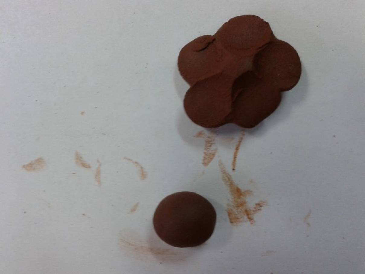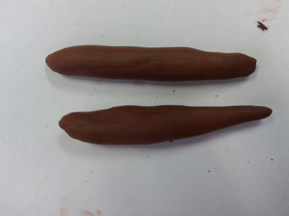Для второго слоя выберете пластику более светлого оттенка, снова набросайте эскиз на бумаге другой формы и меньшего размера, примерно на 5 мм в диаметре этот эскиз должен быть меньше предыдущего. Вырежете заготовку из бумаги, уложите на поверхность пласта более светлого оттенка и меньшей толщины (не более 1 мм) и вырежете по контурам бумажного эскиза лезвием заготовку из глины.