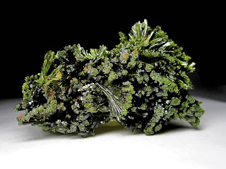 Дендритоподобные агрегаты мелких кристаллов эпидота очень похожи на мох на камне, и к слову, являются одними из самых очаровательных форм выделения этого камня.