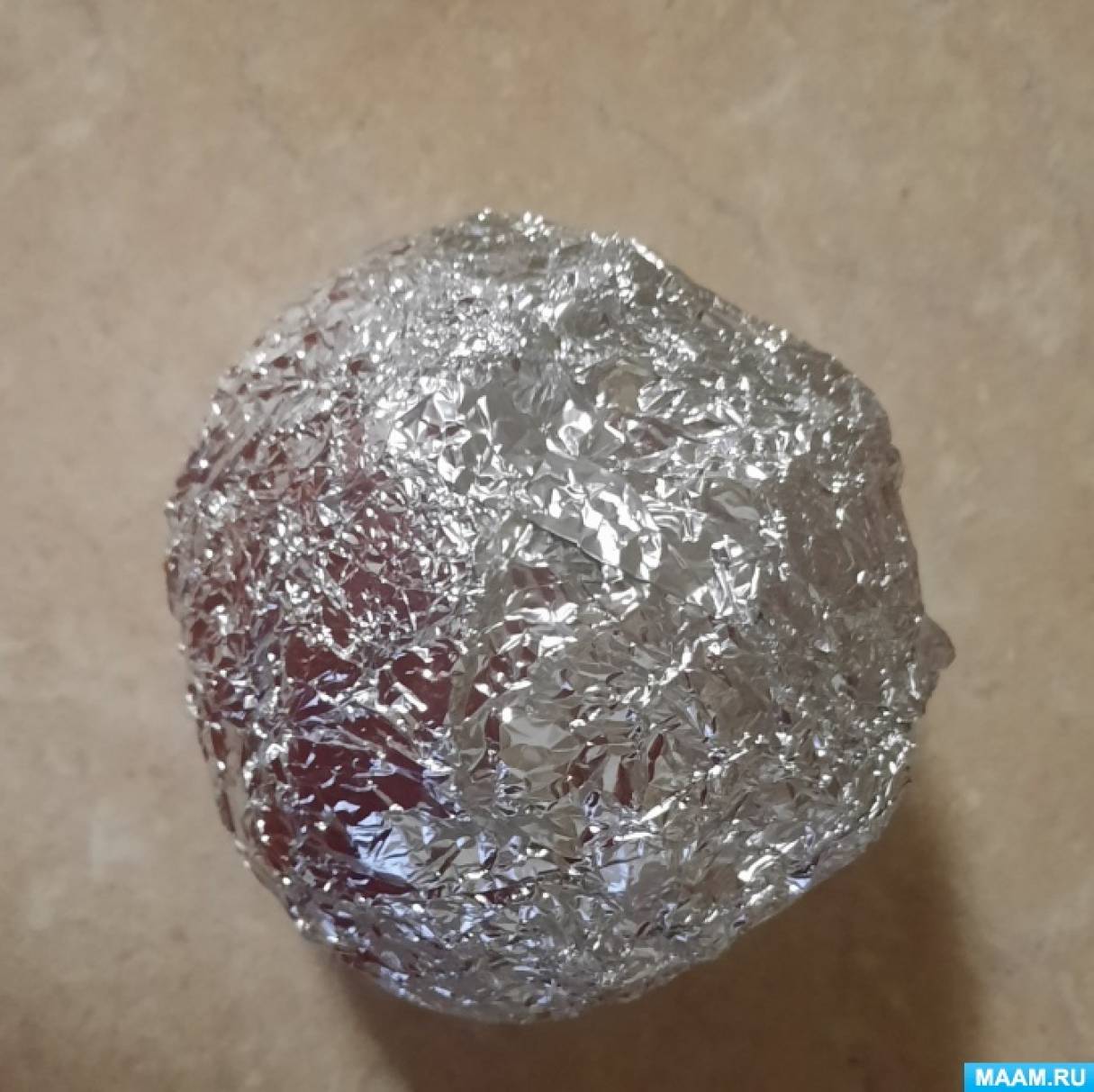 Много бумаги или газеты из которых мы сформировали шар, так же фольга, которой обернули наш полученный шар из бумаги или газет.