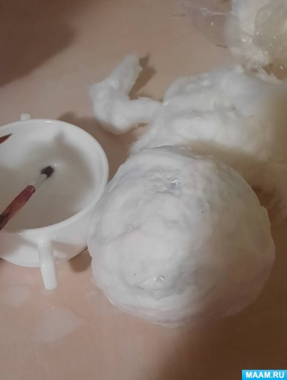 Когда мяч, полностью покроется ватой, дайте высохнуть, или посушите феном для быстрого высыхания.