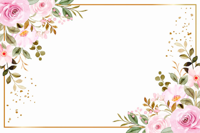 Еще одной идеей для рамки из цветов акварелью можно считать рамку без четких границ. По краям такой рамки изображают цветы, а ближе к середине идет градиентное уменьшение яркости окраса самого листа. Такой формат отлично подойдет для открытки или приглашения.