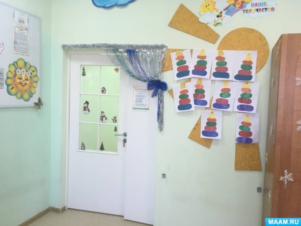 Украшение приёмной к Новому году в первой младшей группе