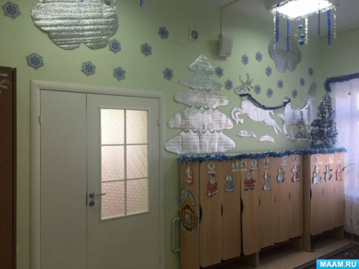 Украшение второй младшей группы к зиме и Новому году «Волшебница Зима» Хочу поделиться с вами идеей украшения группы к новогодним праздникам. В нашем детском саду уже стало традицией оформлять группы по временам.