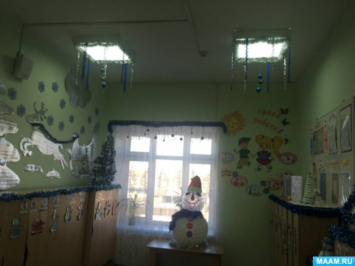 Новогодний декор групповой комнаты.