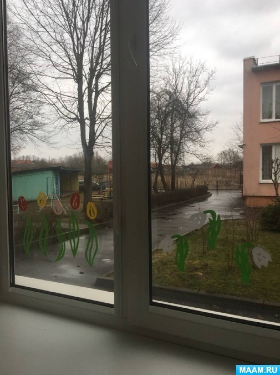 Фотоотчет «Украшаем окна» «Украшаем окна» На дворе стоит весна! После зимней лютой стужи Просыпается от сна Вся природа. Даже лужи Не покроет лед за ночь, Гонит солнце.