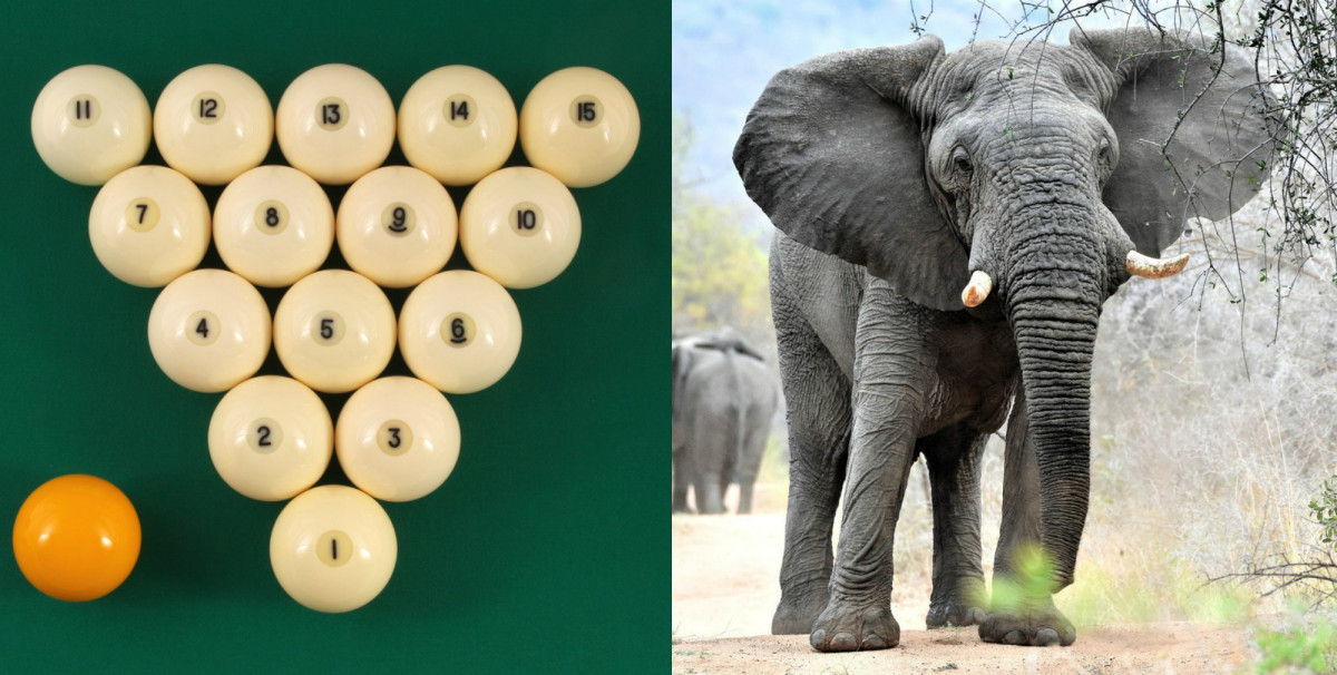 Пару веков назад бильярдные шары изготавливались из бивней слонов. В бивнях слоних капилляры и нервные каналы проходят по центру, а у самцов они сворачиваются. В итоге для производства шаров требовалось убить именно самку, поскольку только из ее бивней получались изделия 1-го сорта с идеально сбалансированным центром тяжести.