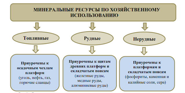 Рис.1. Виды минеральных рес у рсов по использованию и их связь с