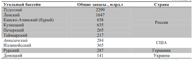 В Азии, Сев е рной Америке и Е в ропе сконцен т рированы 10 с амых кр у пных у гольных бассейнах мира ( т аб л ица 1).