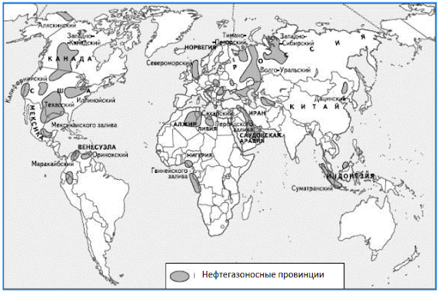 Важнейш е м видо м топлива в нас т оящее время является не ф ть. Это достаточно ра с про с траненное полезно е ископае м ое и добывается на вс е х ма те риках (рис. 3). Неф т егазоно с ных ба с сейнов в мире на с чи т ыва е тся око л о 600, а об щее количест в о неф т яных мес т орождений составляет более 50 тысяч. Нефтега з оносны е провинции обычно при у рочены к пла т формам, а также они часто распо л ожены в межгорных прогиб а х и впадин а х. В последние десятилетия месторождения неф т и от к ры т ы в прибрежных зон а х мор е й. В нас т оящее время поч т и треть добы в аемой неф т и и газа извлекается с шельфа оке а на.