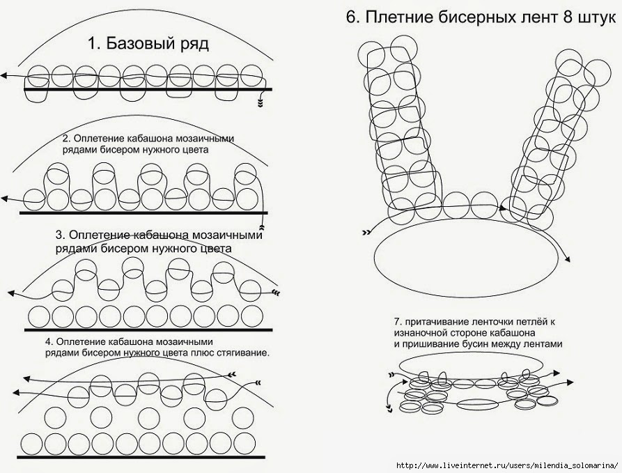 Несколько картинок по оплётке кабошонов на рисунках ниже: