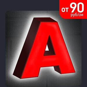 Буквы с двойный подсветкой лицевой и задней стороны. Возможна комбинация цветов.