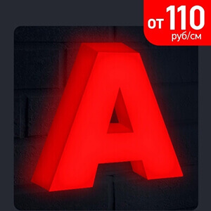 Буквы объемные из акрила. Светятся борта и лицевая поверхность. Возможна комбинация цветов.