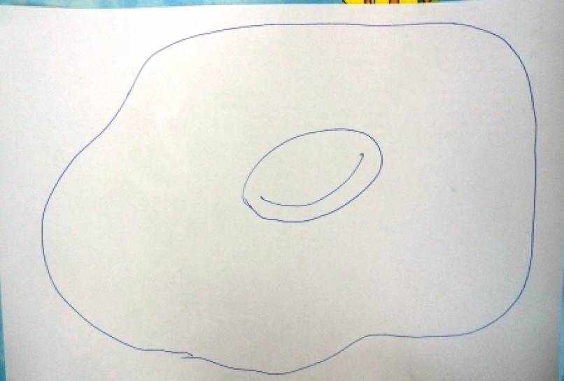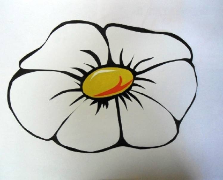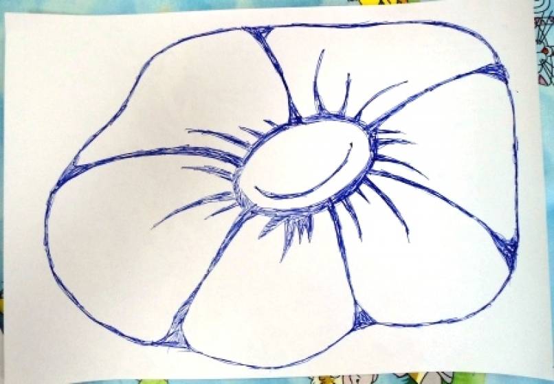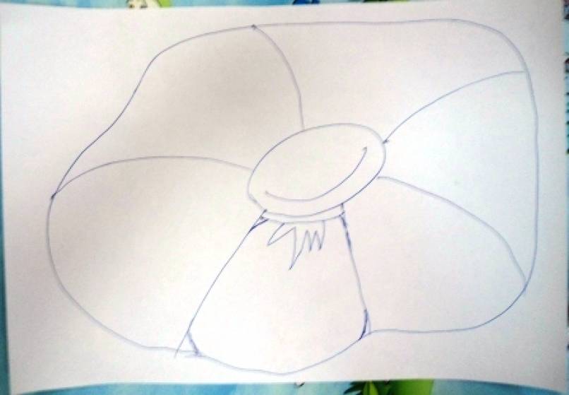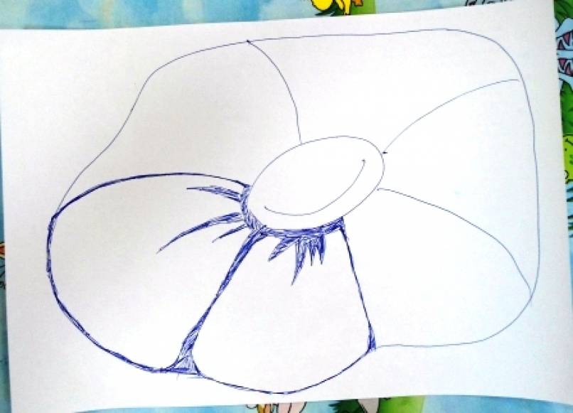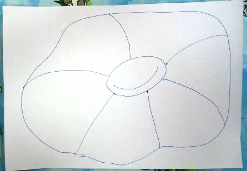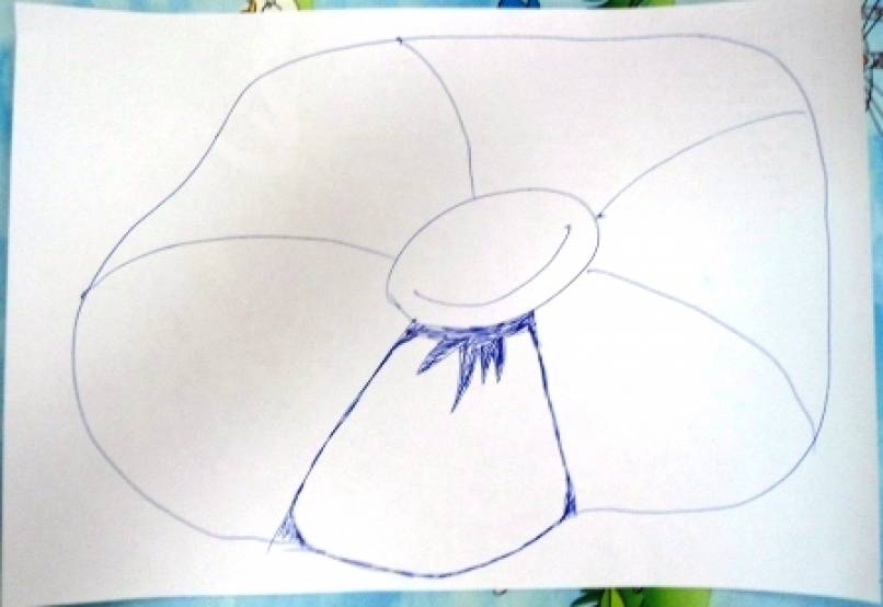 Далее – рисуем в ней маленький овал, также произвольной формы. Это серединка цветка.