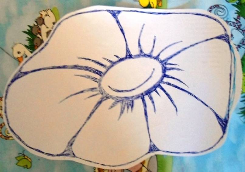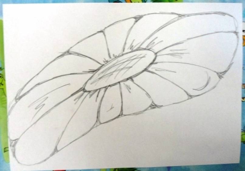 От серединки делим плоскость на любое количество лепестков. У меня – на шесть.
