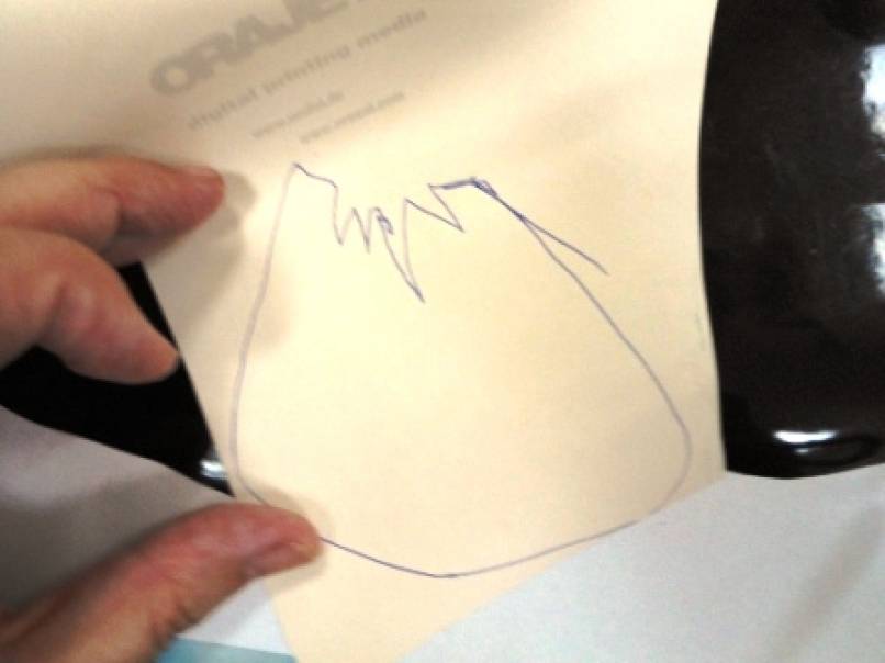 Накладываем зеркально на изнанку чёрного ORAKALа. Обводим и вырезаем.