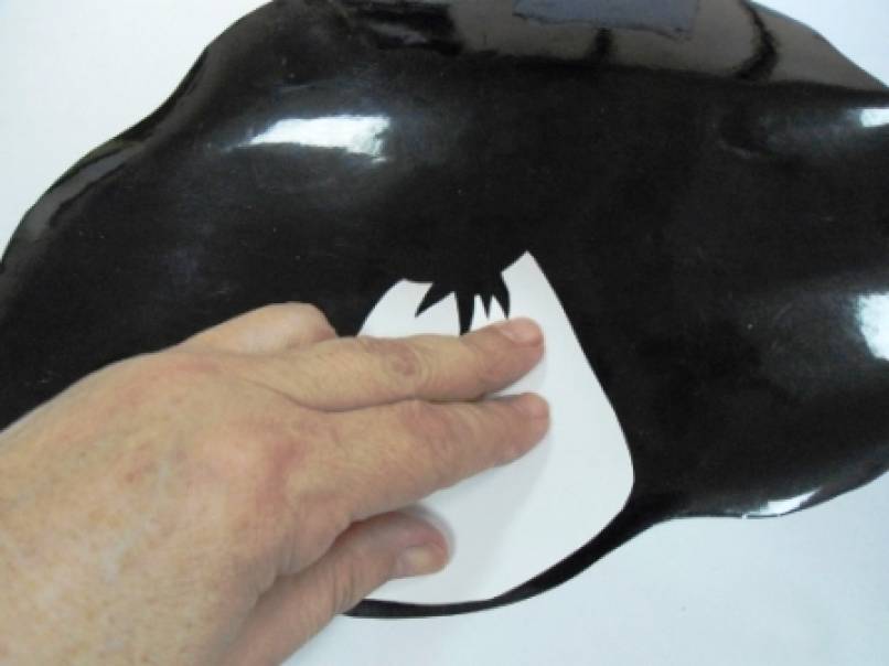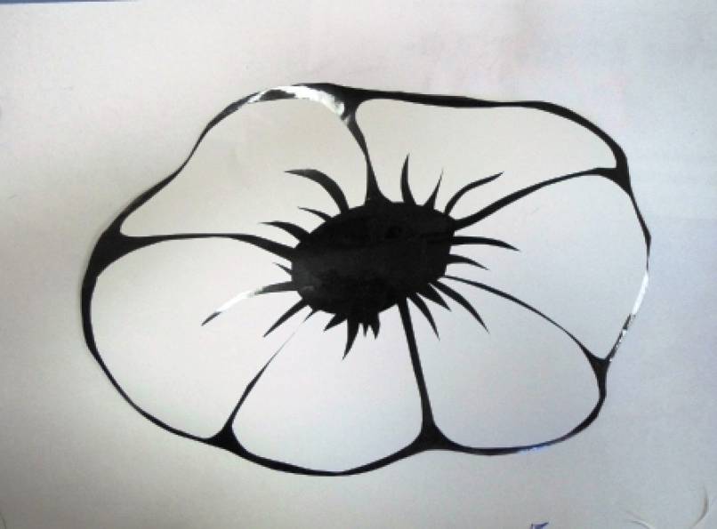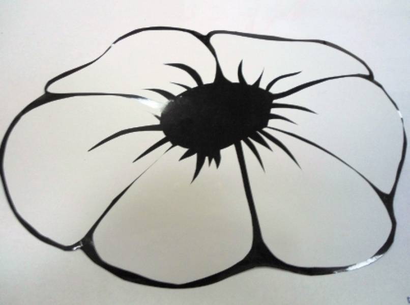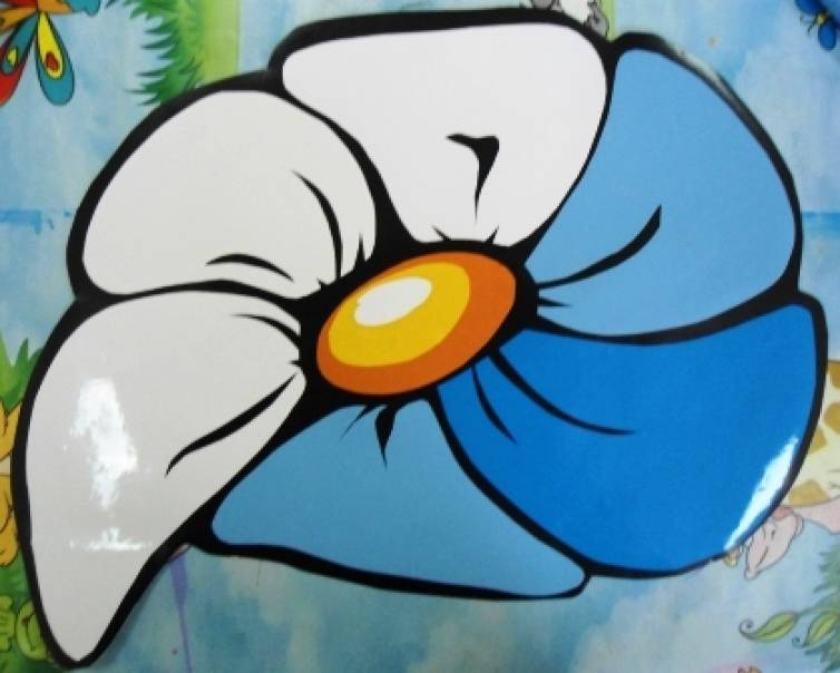 Затем вырезаем из рисунка каждый лепесток, переводим его уже на плёнку белого цвета, опять-таки вырезаем, приклеиваем на нужное место.