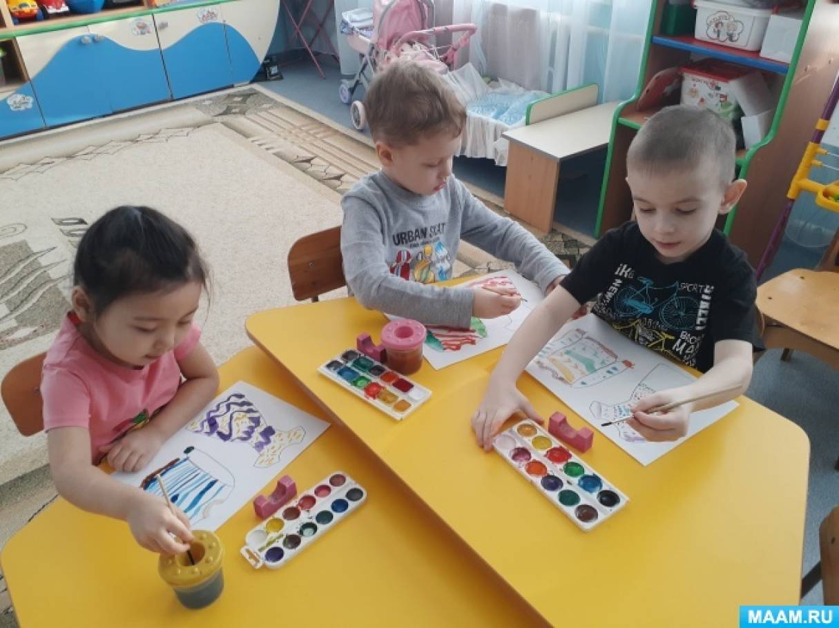 Обучая дошкольников живописи, педагог детского сада уделяет особое внимание декоративному рисованию. С особым интересом ребята всегда расписывают орнаментами шаблоны одежды, обуви, головных уборов, ведь эта тема им понятна и близка. В средней же группе малышам предлагается занятие «Украшение свитера и платья».
