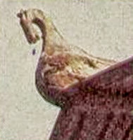 Конец охлупня вырезали в виде головы коня, птицы и т.п. Под коньком располагалось полотенце, закрывающее стык причелин.