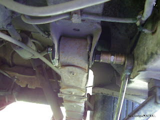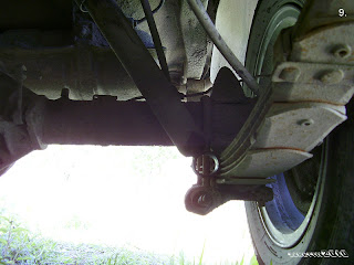 10. Внимание! После того как отвернете гайку переднего крепления рессоры, попробуйте выбить болт, кому удастся это сделать (смотрите не повредите бак!), тому просто чертовски повезет.