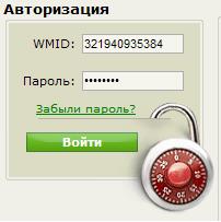 4. После завершения успешной регистрации в поле авторизации слева вводим wmid и пароль, кликаем «Войти»: