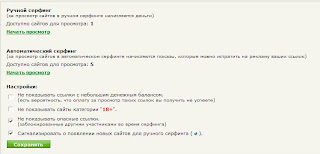 Автоматический серфинг — Принцип аналогичен «Ручному серфингу», только контрольное число по окончанию просмотра нажимать не нужно, переход на следующий сайт происходит автоматически. (заработанные автопоказы можно продавать на «Бирже показов» за деньги)
