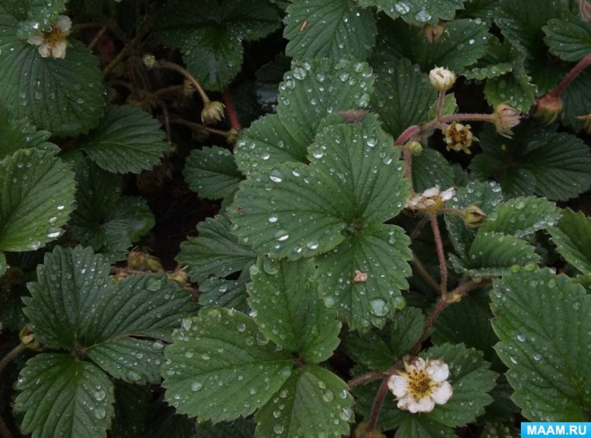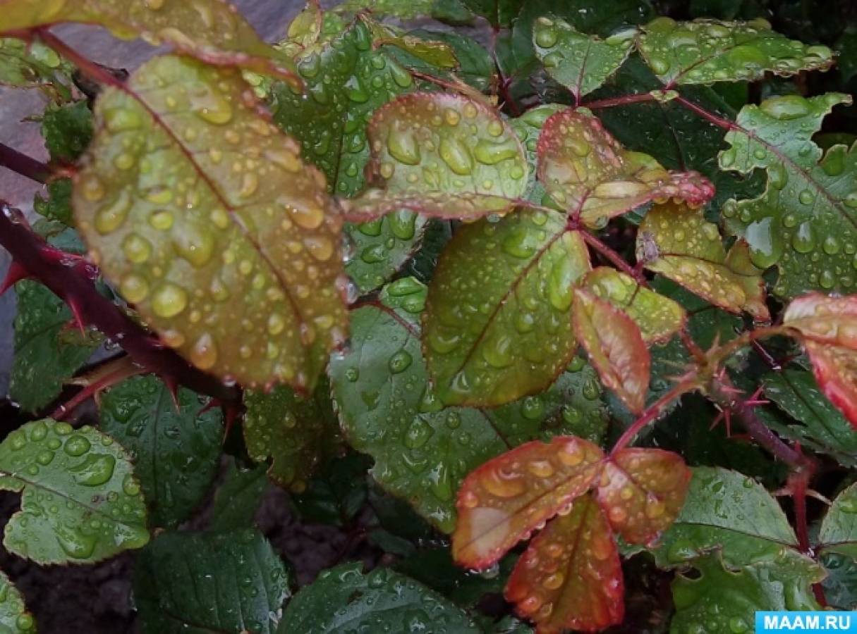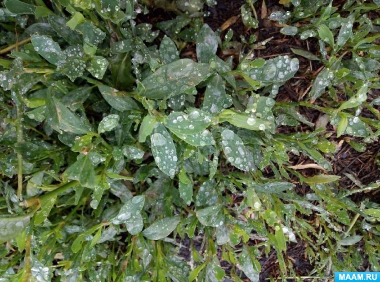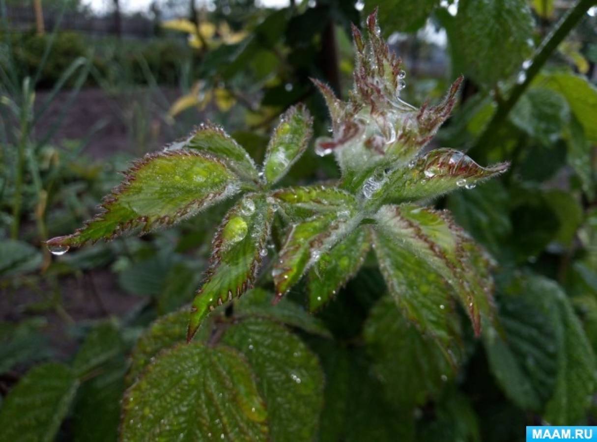 На фотографиях ниже видны капли дождя, которые придают сказочный вид: кустарникам, цветам, культурным растениям и разнотравью.