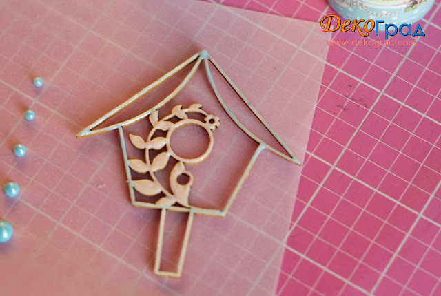 И, конечно, чипборд! Его мы все любим и часто применяем в своих работах! Скажу откровенно, тонкие детали покрыть жидким жемчугом довольно сложно. Надавливая на тюбик, ведите носиком по линиям, практически не касаясь чипборда. Жемчуг будет ложиться сам. Главное рассчитать силу давления и не передавить.