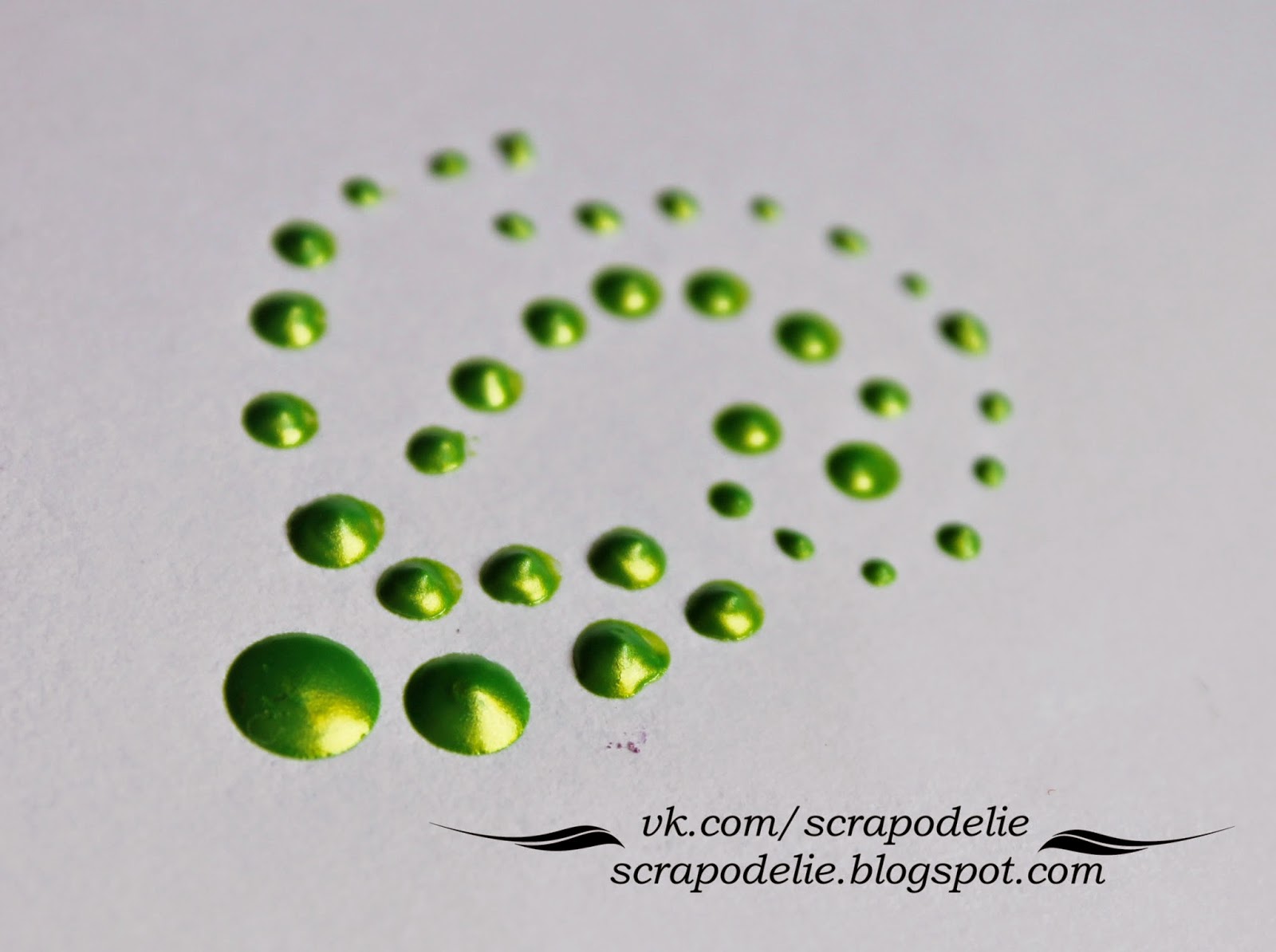 Когда я впервые взяла флакончик с жидким жемчугом, у меня ничего не получилось. Руки дрожали, капли были не ровные а иногда вообще смазанные. Немного потренировавшись, рука потихоньку привыкла, перестала дрожать и капли стали ровненькими .
