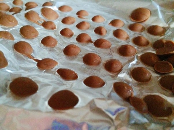 4. Выдавите шоколад небольшими капельками на фольгу.