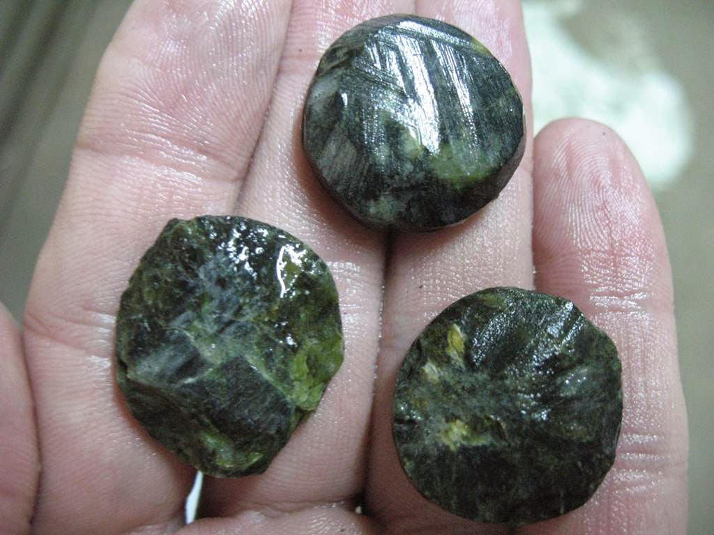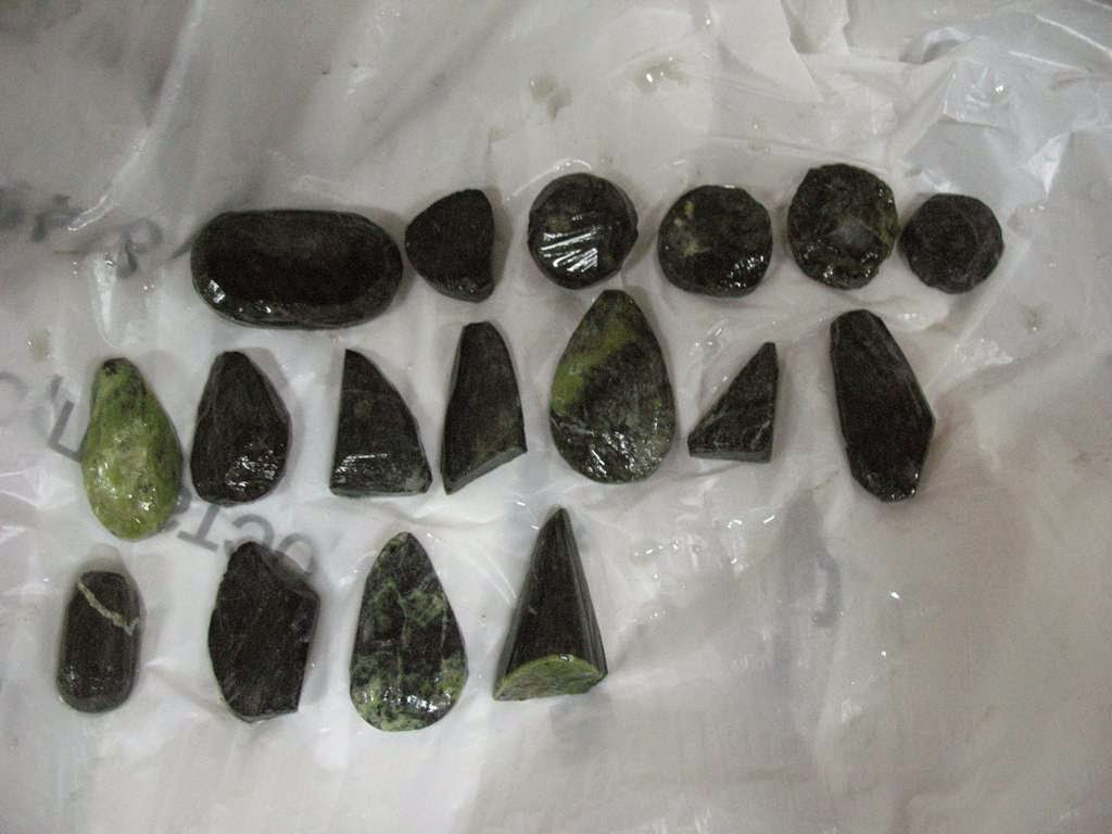 И оконтуренные заготовки из змеевика. Змеевик пилить достаточно легко и если можно сказать даже приятно.