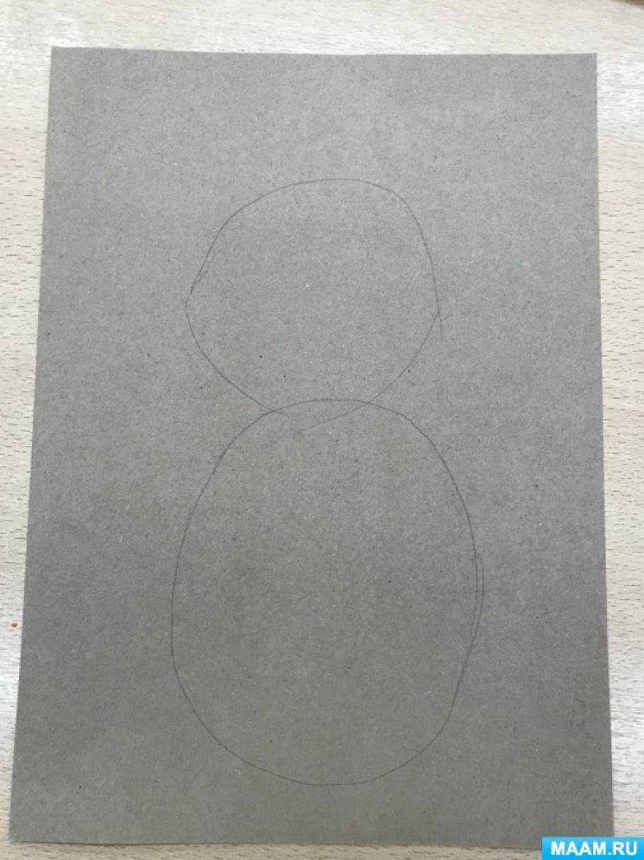 Простым карандашом нарисуем на основе два круга. Верхний меньше нижнего.
